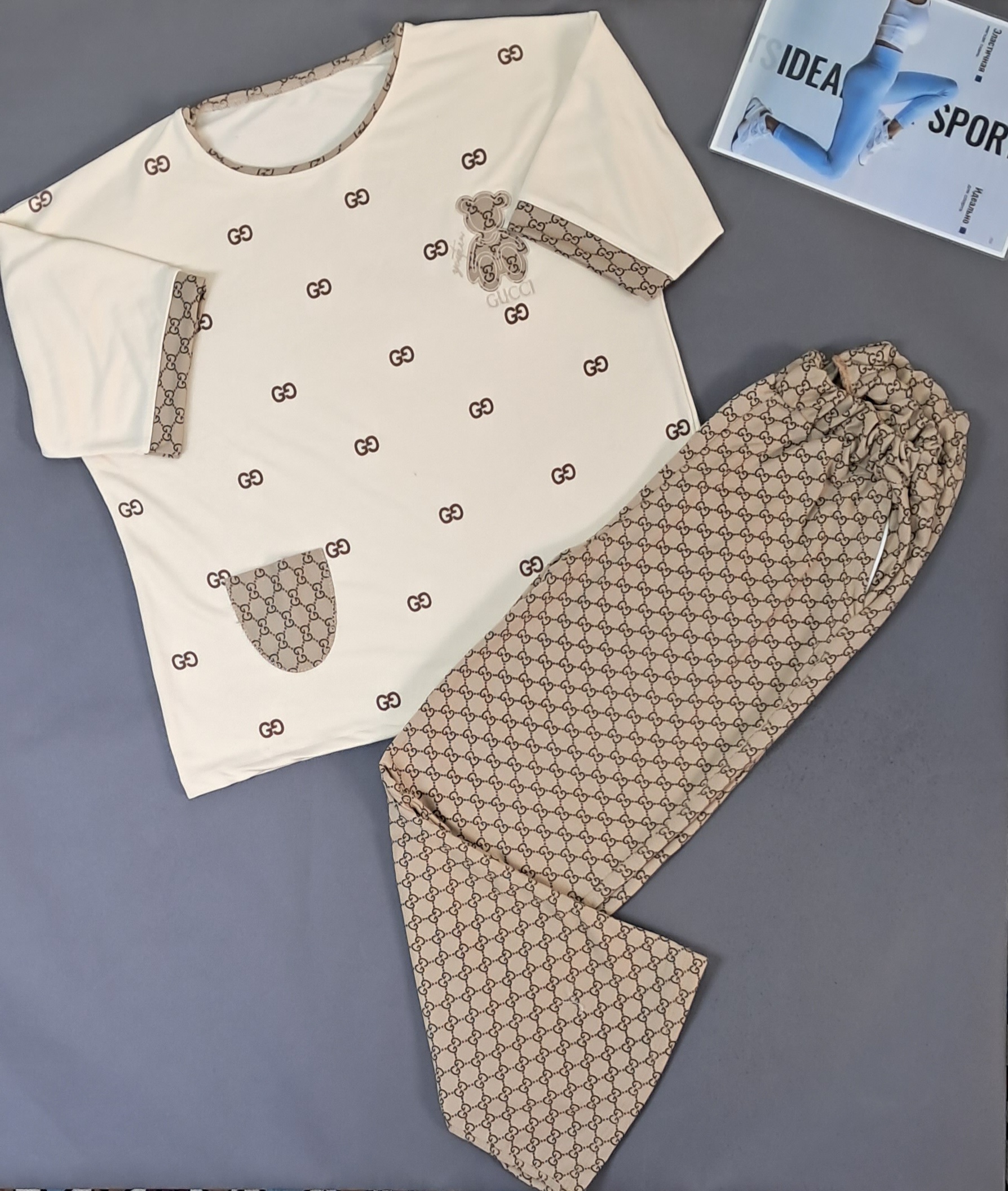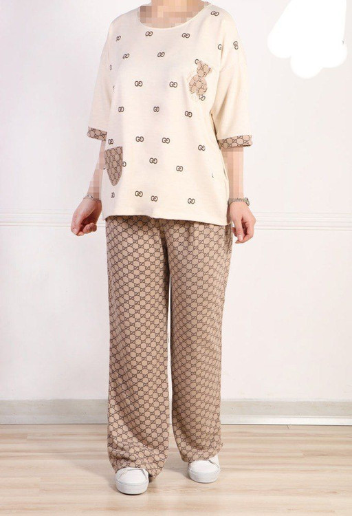 ست اسپورت راحتی_خرسی کرمی شکلاتی زنانه/تیشرت آستین کوتاه-شلوار-کالکشن اسپورت بهار۴۰۵